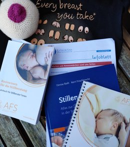 In der AFS (Arbeitsgemeinschaft freier Stillgruppen e.V.) arbeite ich in der Beratung von Mutter zu Mutter. Zwar habe auch ich ein medizinisches Basiswissen bezüglich des Stillens in meiner Ausbildung erworben, das ersetzt jedoch weder den Kinderarzt noch die Hebamme.